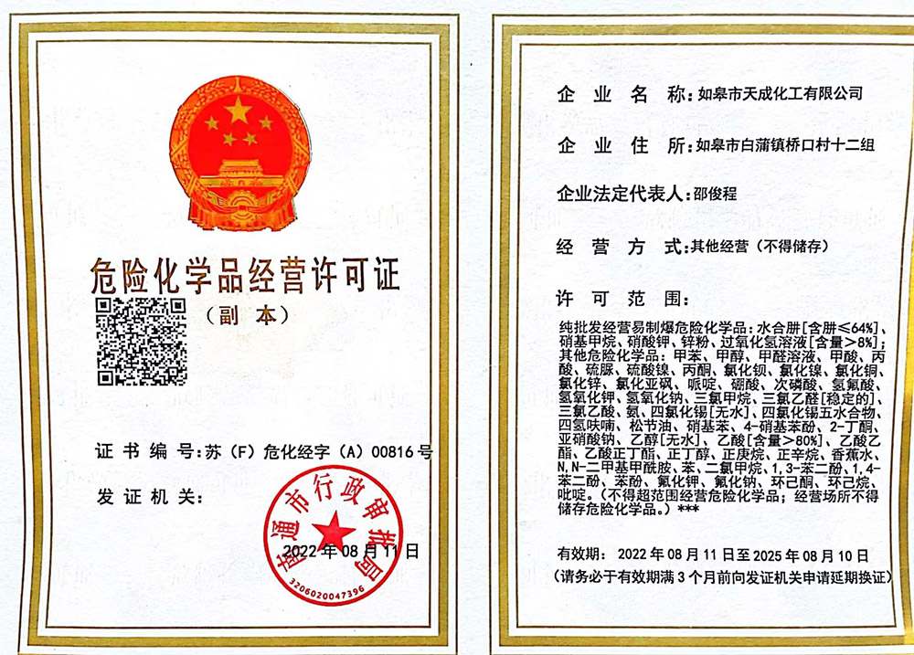 • 歡迎訪問如皋市天成化工有限公司官方網站